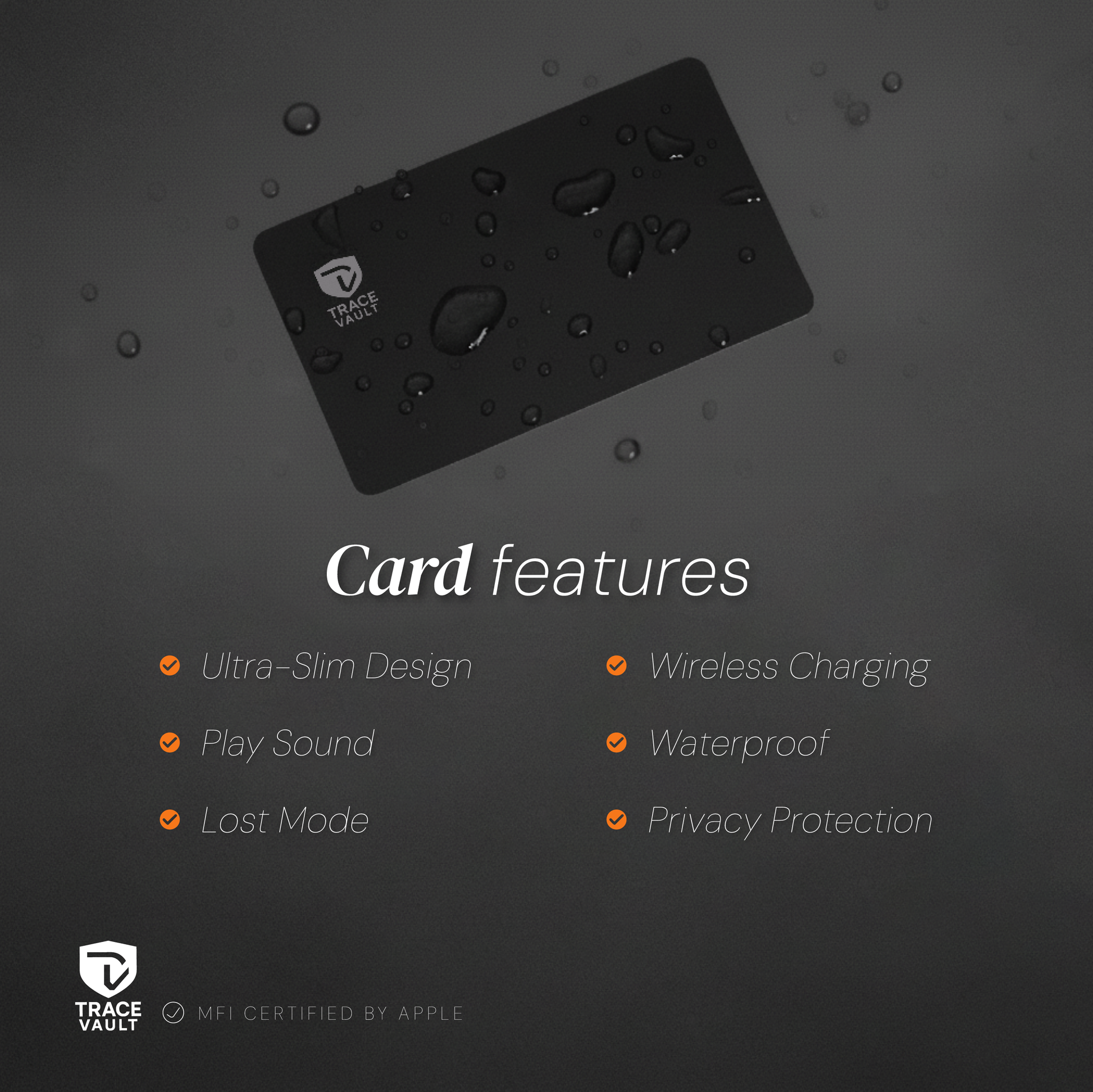 We created Trace Vault to be the world’s slimmest, most reliable tracking card. Designed for Apple Find My®, built to last, and made to protect what matters most.