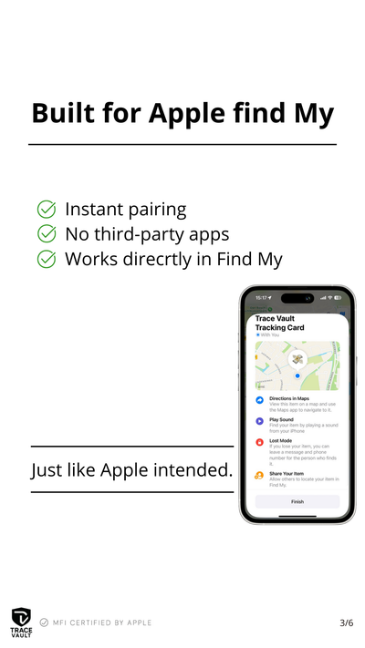 We created Trace Vault to be the world’s slimmest, most reliable tracking card. Designed for Apple Find My®, built to last, and made to protect what matters most.